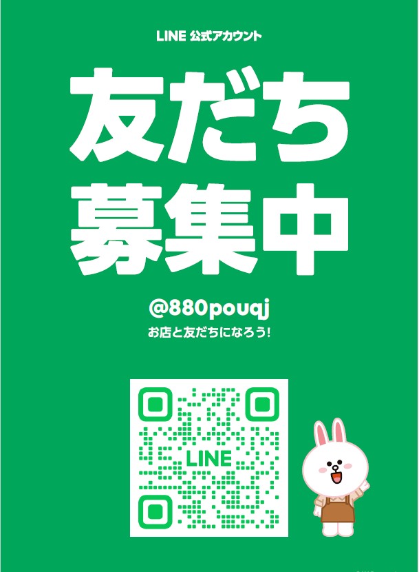 LINEアプリのホーム画面の「友だち追加」から、検索画面の「ID」を選択。「@880pouqj」と入力し、友だち登録する